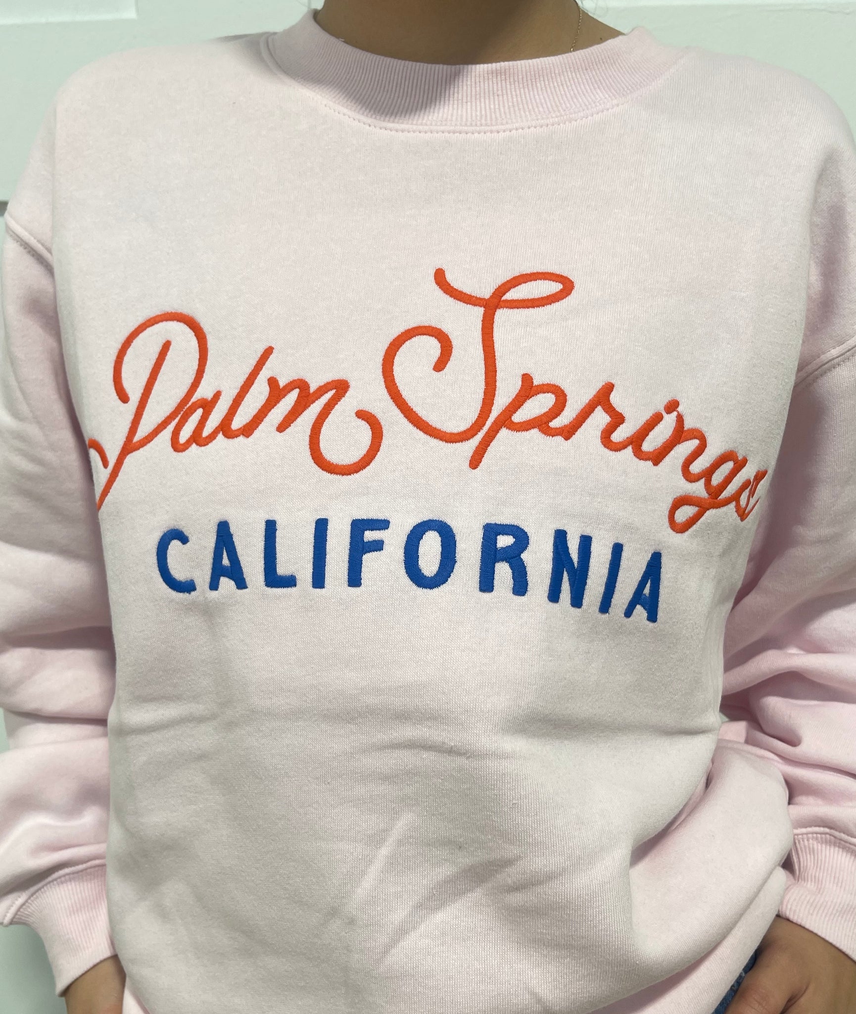 Sunny, soft, and effortlessly laid-back—this pullover captures the carefree spirit of California cool. Designed on a pretty pink ground, it features “Palm Springs California” embroidered across the front for a pop of texture and charm. Whether you’re chasing the sun or keeping it cozy at home, this sweatshirt brings a hint of desert paradise to your everyday look.